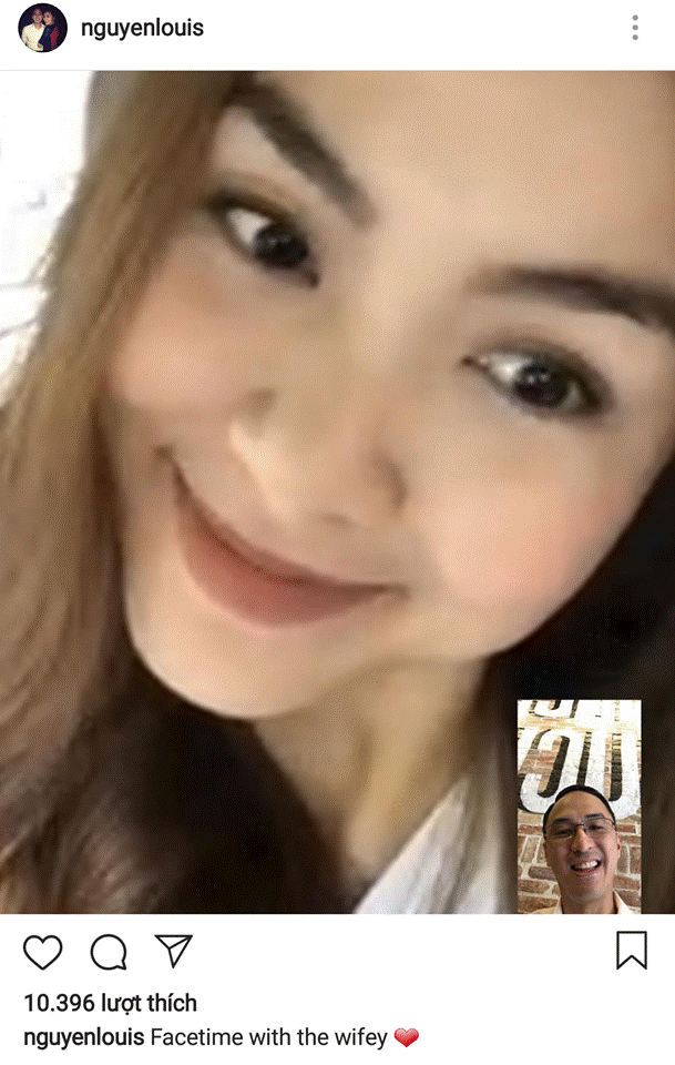 Mỗi lần đi ăn tiệc hay du lịch, Louis Nguyễn luôn đăng tải ảnh chụp cô vợ từng là ngôi sao hạng A của showbiz Việt một cách đầy tự hào. Thậm chí, vị doanh nhân tài giỏi còn chụp cả màn hình điện thoại lúc trò chuyện qua facetime với vợ như một cách khoe gương mặt mộc tự nhiên đẹp bất kể thời điểm của vợ mình.