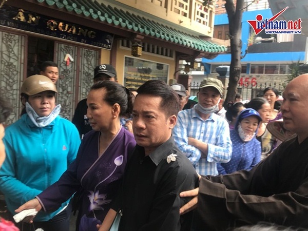 Dòng người có mặt tại chùa Ấn Quang ngày càng đông. Diễn viên Minh Nhí khóc nức nở.