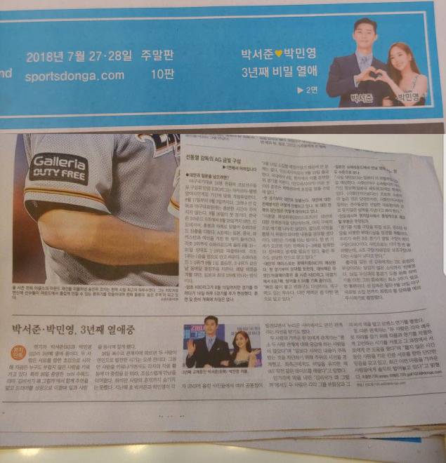 Ngày 26/7, một bản in của tờ báo Sports DongA số ra ngày 27, 28/7 đã bị rò rỉ trên mạng. Trong đó, thông tin cực nóng về việc đôi nam nữ chính của bộ phim "Thư ký Kim sao thế" Park Seo Joon và Park Min Young đã hẹn hò được 3 năm khiến cộng đồng mạng "phát sốt".