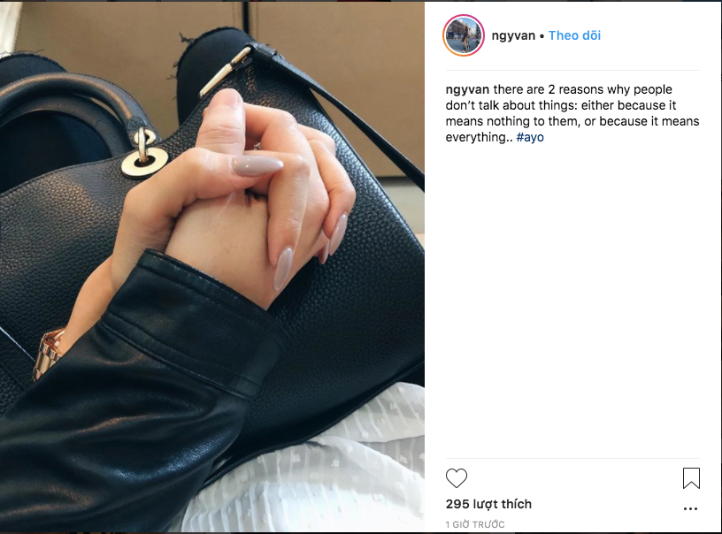 Sau đó, cô lại chia sẻ bức ảnh tay trong tay với người đàn ông giấu mặt cùng dòng chú thích: "Có 2 lý do mà người ta không nói về một điều gì đó. Bởi vì nó không có ý nghĩa gì hoặc bởi vì nó là tất cả mọi thứ đối với họ."