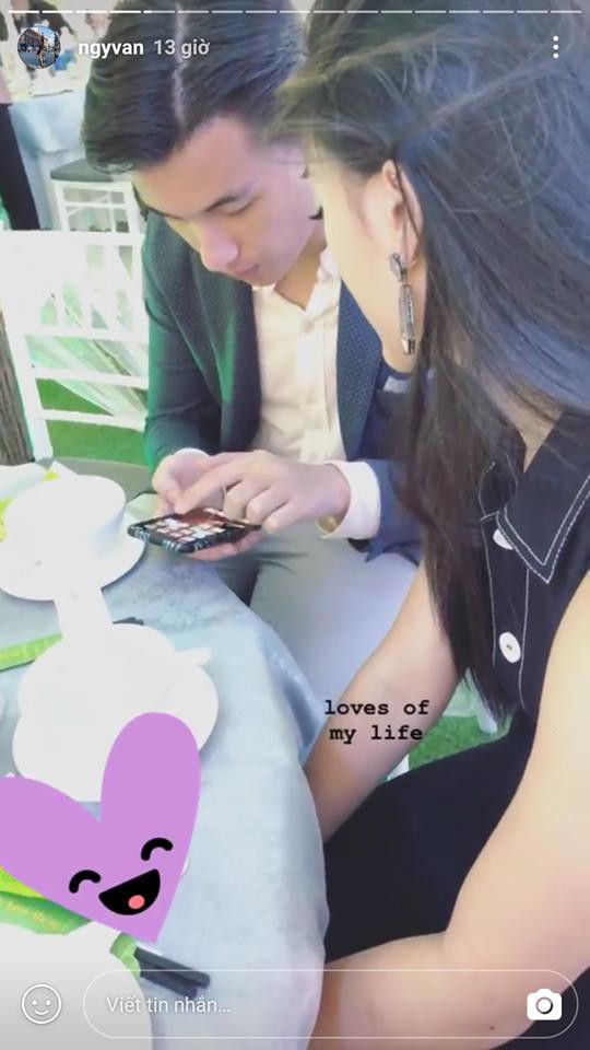 Cách đây ít giờ, Y Vân đăng lên story của Instagram hình ảnh đang ngồi cạnh một chàng trai trẻ lạ mặt đính kèm biểu tượng hình trái tim và lời đề tựa: "Loves of my life". (Tạm dịch: Tình yêu của đời em).
