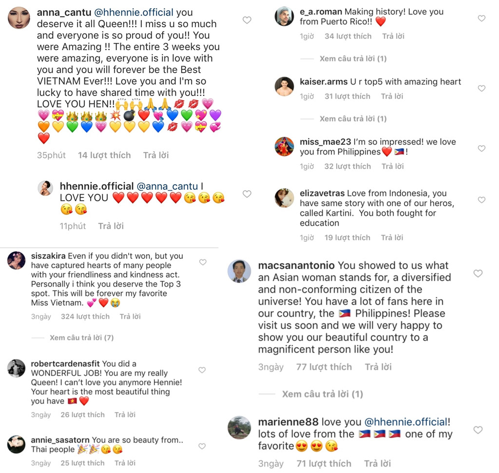 | Khán giả quốc tế để lại hàng nghìn bình luận tích cực trên trang cá nhân của H'Hen Niê. |