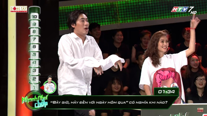 Chẳng hạn, khi Hari Won hỏi tới câu "Con gì chỉ cần uống mà không cần ăn?", Kiều Minh Tuấn nhao nhao lên: "Con ấy, con ấy đó…".