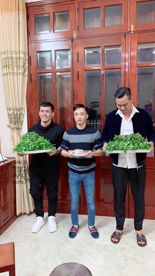 Người bạn này cũng vui vẻ trêu dáng vẻ hài hước này của Cường Đô la là "đi hỏi vợ kiểu nhà người ta": "Tráp lễ nhà trai, đĩa lòng chứng tỏ lòng thành, còn rau thì mâm cao cỗ đầy thế này cơ mà. Đã bảo là đi ăn hỏi mà không tin" .