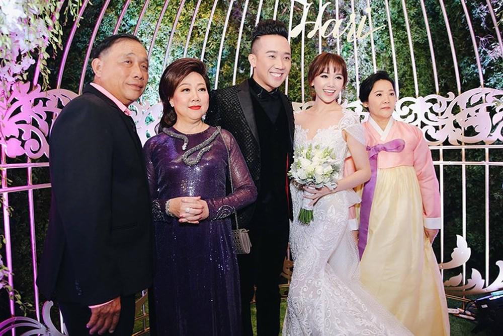 Trấn Thành - Hari Won trong ngày kết hôn bên bố mẹ chồng, mẹ vợ.