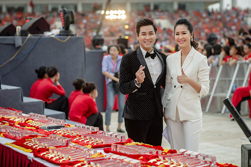 MC Nguyên Khang và Dương Thùy Linh là hai MC được chọn dẫn dắt lễ vinh danh các vận động viên đạt thành tích xuất sắc tại Asiad 2018 vào tối 2/9.
