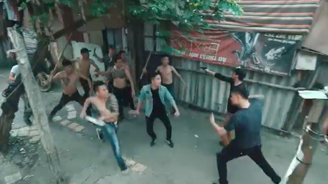 Trong đó, thu hút sự chú ý nhất phải kể đến cảnh quay Lam Anh (Hoàng Thùy Linh) bị một tay giang hồ bặm trợn có vẻ ngoài giống Khá Bảnh dí dao vào mặt. Chỉ một chút sơ suất, Lam Anh cũng sẽ tàn phai nhan sắc, bởi tay giang hồ này chẳng có chút dấu hiệu là nương tay cho Lam Anh.