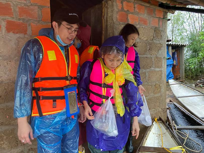 Mẹ của Hồ Ngọc Hà cùng đoàn cứu trợ đã đến vùng ngập sâu nhất ở huyện Hải Lăng, tỉnh Quảng Trị.