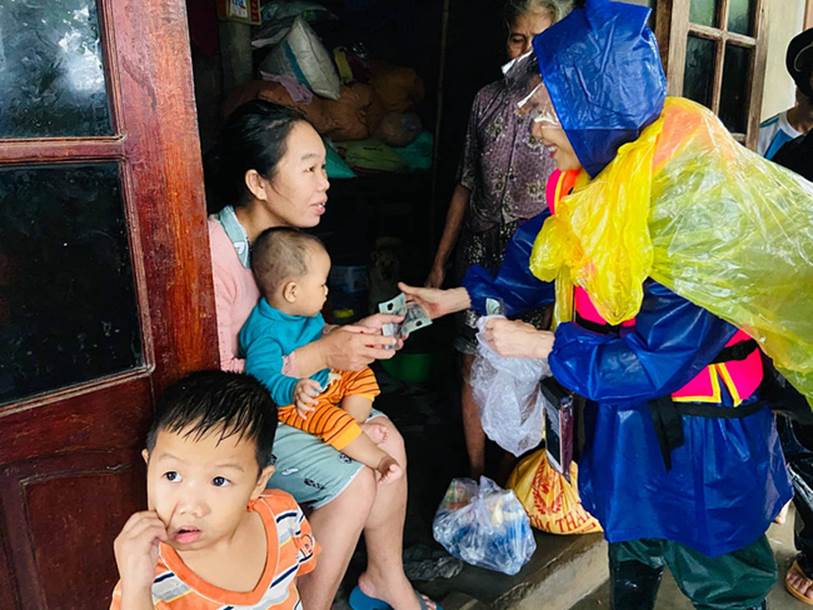 Bà trao tận tay tiền và đồ ăn cho người dân