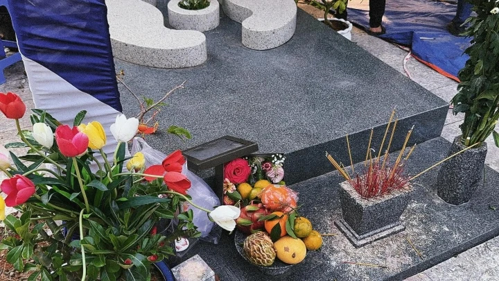 Phần mộ của cố NSƯT Thanh Kim Huệ ở bên cạnh phần mộ của NSƯT Vũ Linh.