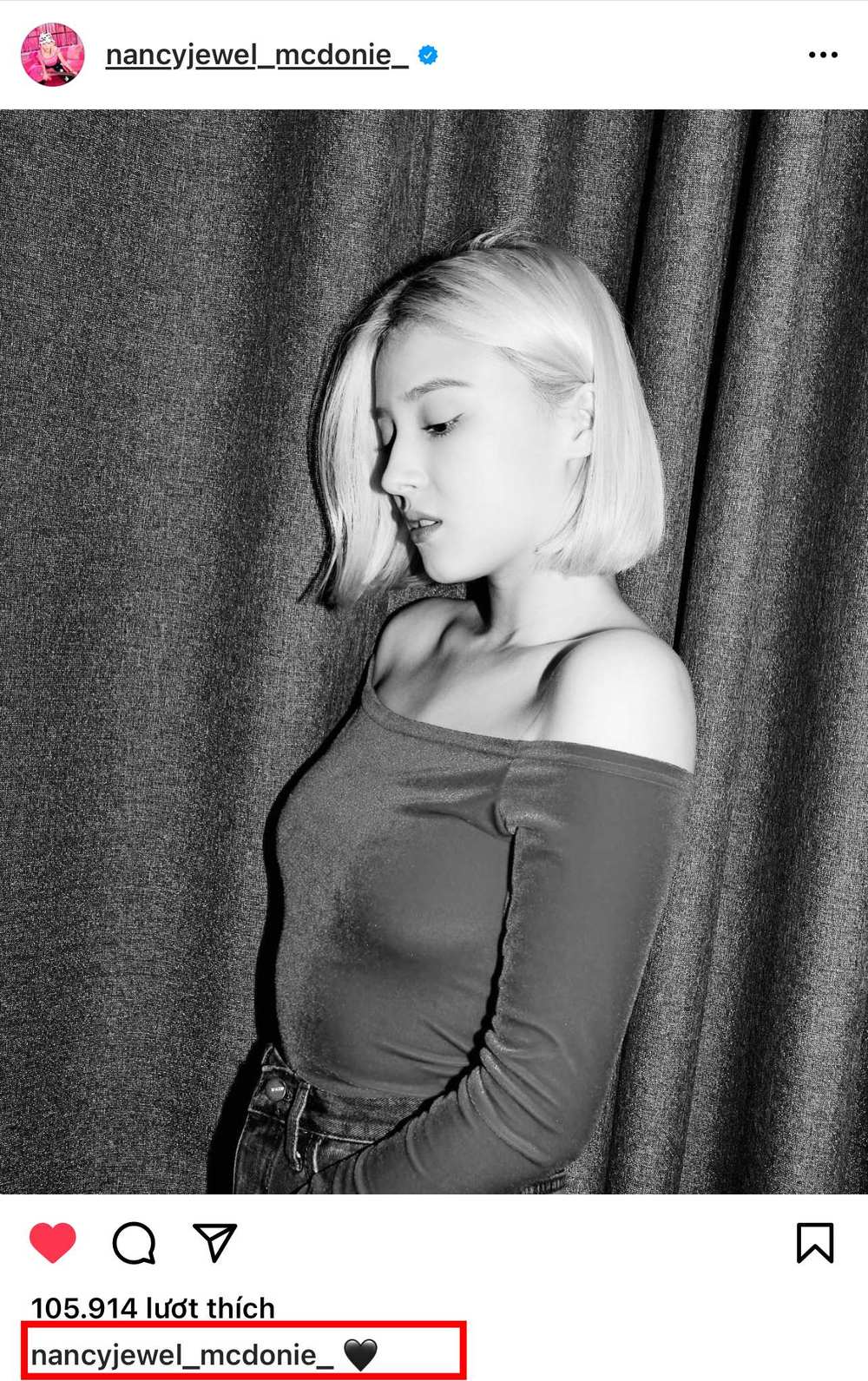 Mới đây, trên trang cá nhân của mình Nancy đã đăng tải dòng trạng thái đầu tiên. Nữ idol chia sẻ một bức ảnh trắng đen và một icon trái tim màu đen trong bài viết. Nhìn ở góc độ của bức ảnh thì đây là một Nancy với gương mặt khá tâm trạng, bên cạnh đó nữ idol còn chỉnh sửa màu ảnh lại thành đen trắng.