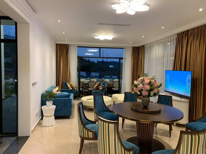 Nội thất trong căn biệt thự hạng sang được thiết kế và bày biện khá tinh tế với tone màu trắng - ghi rất hiện đại.
