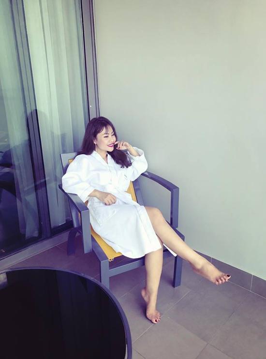 Đã qua 2 lần sinh nở song Kim Xuyến - vợ Đăng Dương - vẫn sở hữu vóc dáng nuột nà, cuốn hút.