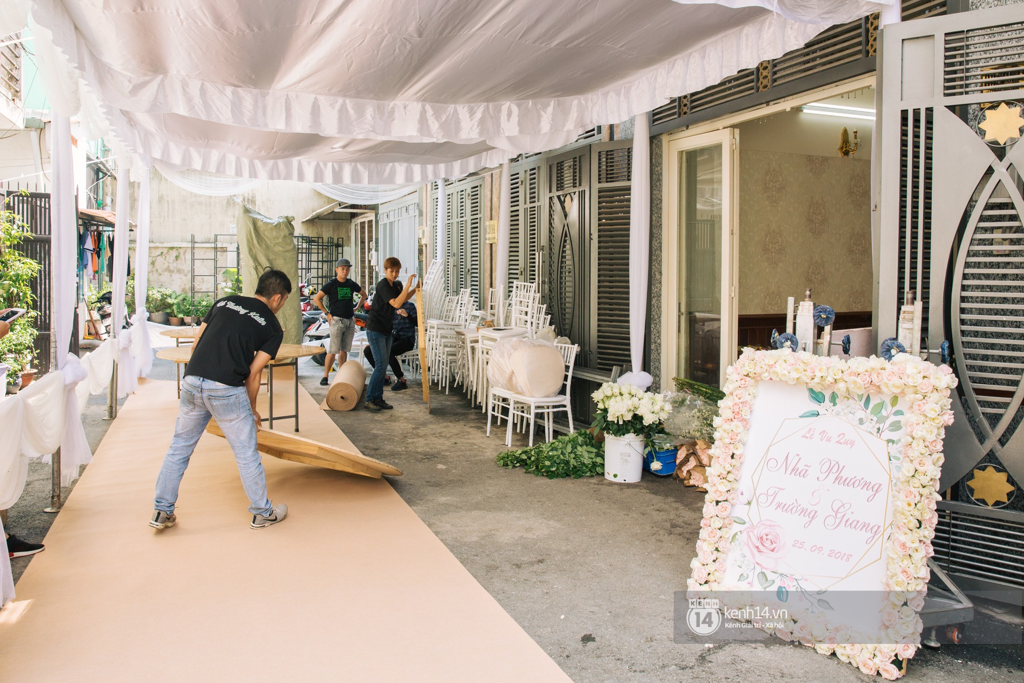 Trong khi đó, tại nhà Nhã Phương, gia đình cũng đang tất bắt đầu chuẩn bị. Mặc dù buổi sáng khá yên ắng, đến 11h trưa không khí trở nên rộn ràng hơn. Thảm và hoa cưới được chuyển vào nhà riêng, bắt đầu quá trình trang trí để chuẩn bị cho hôn lễ diễn ra vào 2h.