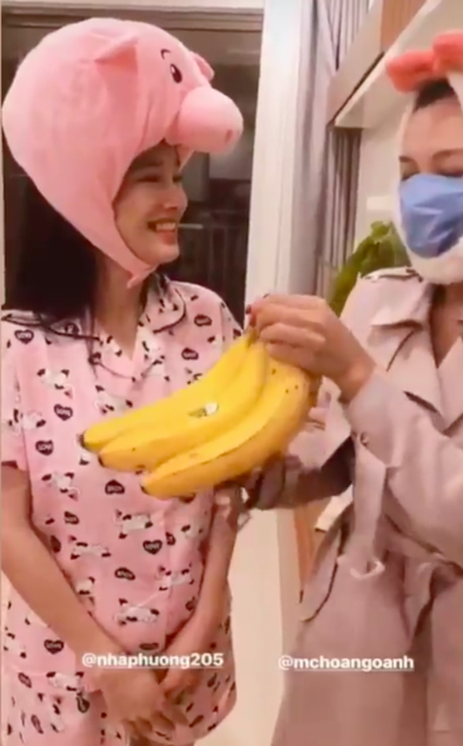 Đặc biệt trong số đó, đoạn clip ghi lại cảnh Nhã Phương và MC Hoàng Oanh trêu ghẹo lẫn nhau nhận được vô số sự quan tâm. Bên cạnh sự nghịch ngợm của bộ đôi, người hâm mộ đổ dồn sự chú ý vào vòng hai nhô rõ của Nhã Phương. Dù đã mặc trang phục suông rộng nhưng có thể dễ dàng nhận ra bụng của nữ diễn viên khá lùm lùm. Điều này càng làm dân mạng thêm tin vào nghi vấn Nhã Phương đang mang thai từng dấy lên trên mạng xã hội trước đó.