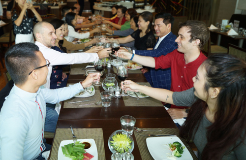 Sau buổi trao giải cũng như ra mắt báo giới trong nước, Quang Minh - Hồng Đào đã dùng tiệc trưa, nâng ly chúc mừng những khách hàng trúng thưởng cũng như giao lưu với Ban giám đốc Công ty TNHH Catalogue Shopping nhằm tìm hiểu hoạt động của loại hình kinh doanh còn mới mẻ này tại Việt Nam.