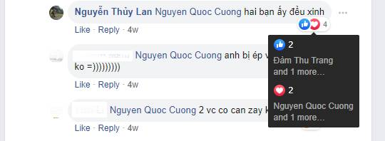 Cường Đô La thả tim bình luận của người thân. (Ảnh chụp màn hình)