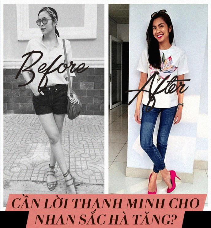 | Bước qua hoàng kim, nhan sắc của Tăng Thanh Hà bị nhận xét là xuống dốc từ năm 2014. Ồn ào bắt đầu từ bức ảnh nữ diễn viên Bỗng dưng muốn khóc tự chụp trên xe ô tô được cô chia sẻ vào tháng 1 năm ấy. Khoe vẻ đẹp của nhẫn và dây chuyền, nhưng mọi sự chú ý của người xem lại dồn vào khuôn mặt gầy hóp của "ngọc nữ". Nhiều người hâm mộ bỗng nhiên ngơ ngác: "Cần lời thanh minh cho nhan sắc Hà Tăng?". |
