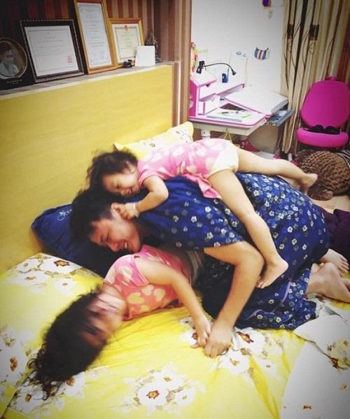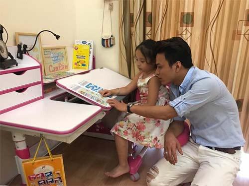 Phòng ngủ và góc học tập rực rỡ sắc màu của hai cô công chúa đáng yêu. Tuy bận rộn nhưng nam diễn viên vẫn luôn cố gắng dành thời gian hướng dẫn con học tập.