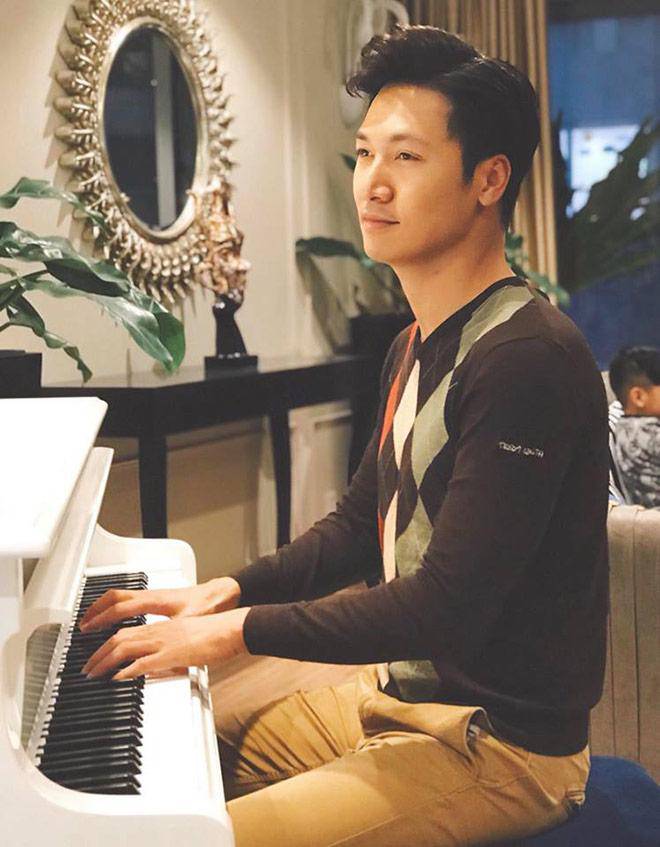 Khu vực được Mạnh Trường yêu thích nhất là chiếc đàn piano màu trắng đặt ở giữa nhà.