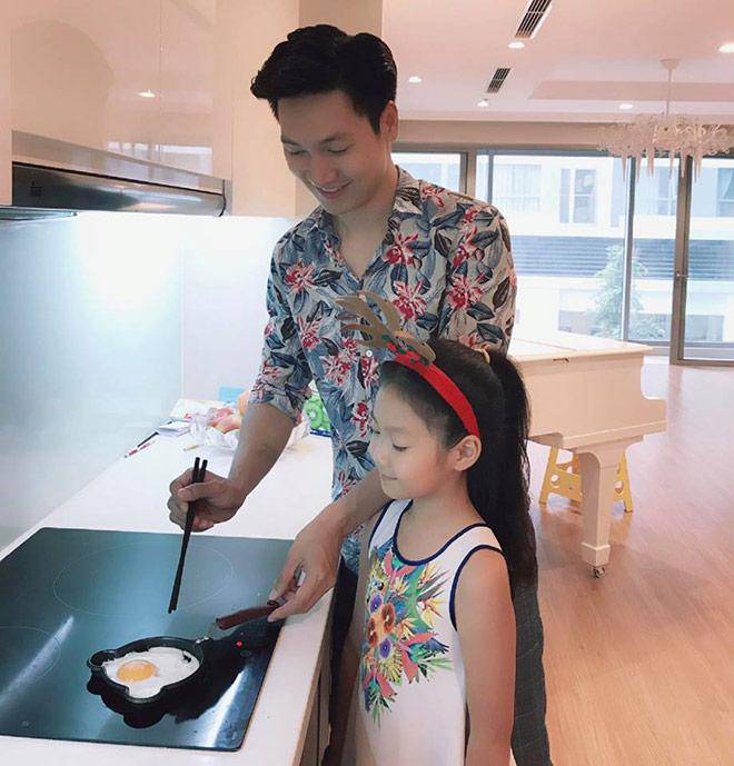 Căn hộ của vợ chồng anh sang trọng và rộng rãi. Để lấy lòng vợ, nam diễn viên đã mạnh tay đầu tư vào căn bếp và thường trổ tài nấu nướng cho cả nhà.