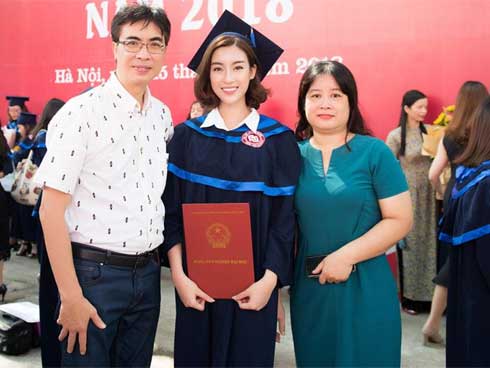 Mỹ Linh và bố mẹ trong lễ tốt nghiệp đại học cách đây một ngày.