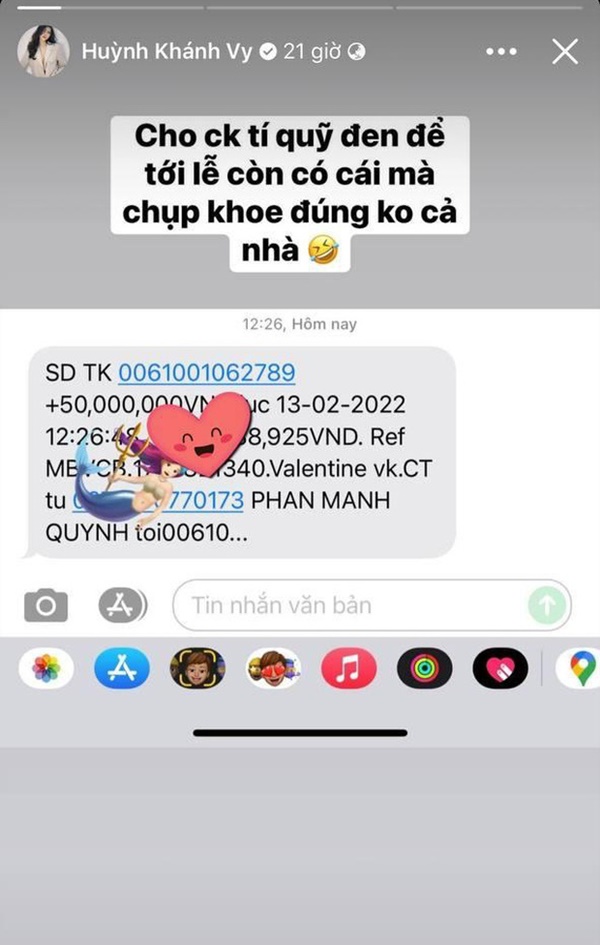 Sau khi vướng tin đồn hẹn hò thiếu gia giàu nức tiếng, Chi Pu được bạn thân rủ rê đi chơi vào ngày đặc biệt này. Sau khi ly thân, Diệp Lâm Anh cũng lên đồ cực "bốc" để tận hưởng ngày Lễ tình nhân bên mẹ ruột. Ngoài ra, dàn mỹ nhân, sao Việt cũng thi nhau khoe hoa, quà và có người còn được chồng chuyển khoản nóng 50 triệu đồng.