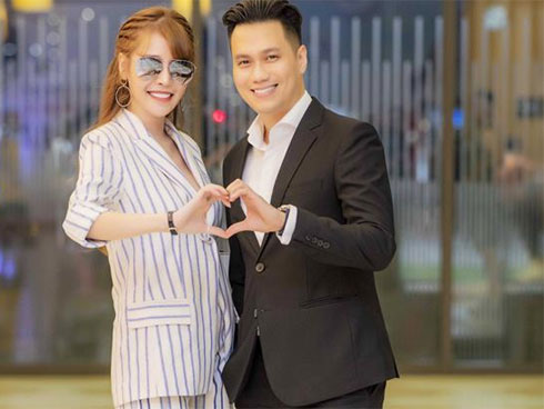 Việt Anh và Quế Vân đi xem phim chung, làm dấu hình trái tim rất tình cảm với nhau.