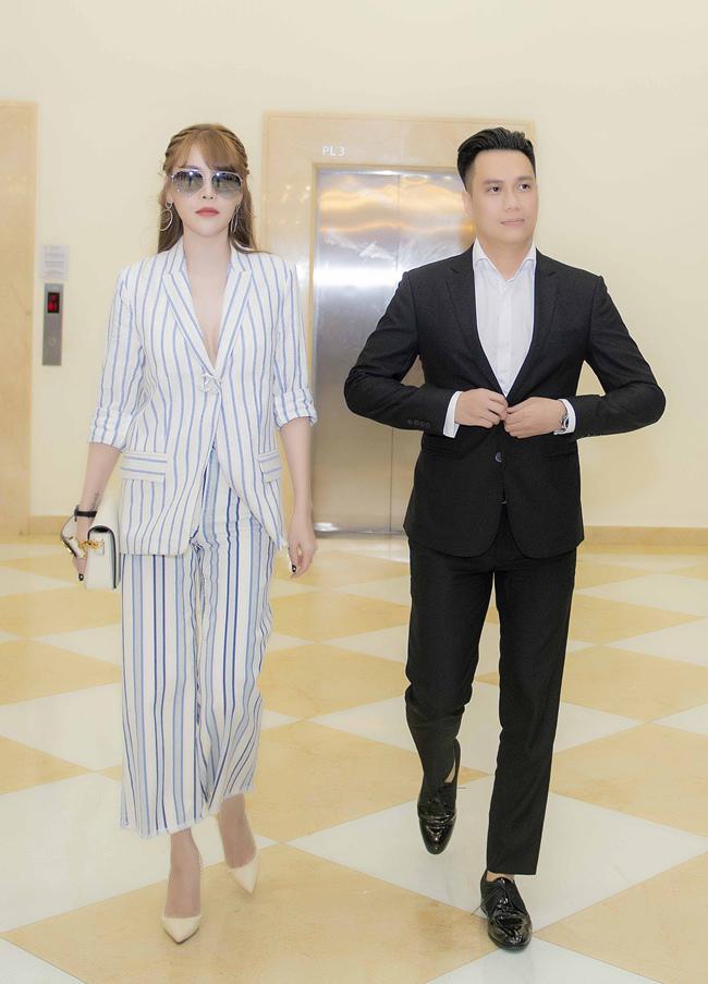 Việt Anh và Quế Vân chụp ảnh với nhau trong một dự án