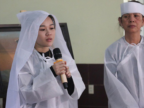 Vợ cũ nghệ sĩ Lê Bình (người mặc áo tang đứng cạnh con gái Khả Hân) về chịu tang chồng cũ.