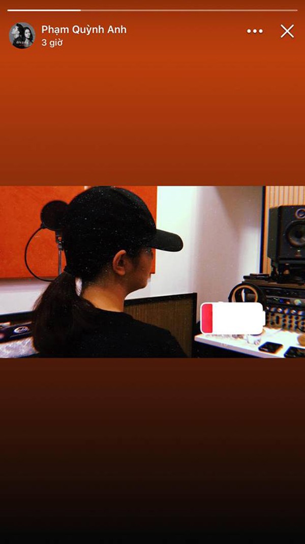 Mới đây, trên Instagram Story, Phạm Quỳnh Anh tiếp tục đăng tải bức hình cô đang ngồi trầm ngâm trong phòng thu. Bức ảnh được chụp từ phía sau của nữ ca sĩ toát lên sự đượm buồn. Nhiều cư dân mạng cho rằng, có lẽ, sau ngần ấy những đau khổ, tổn thương và ngột ngạt, Phạm Quỳnh Anh muốn tìm đến âm nhạc, đến đam mê cháy bỏng của mình để khỏa lấp đi nỗi buồn.