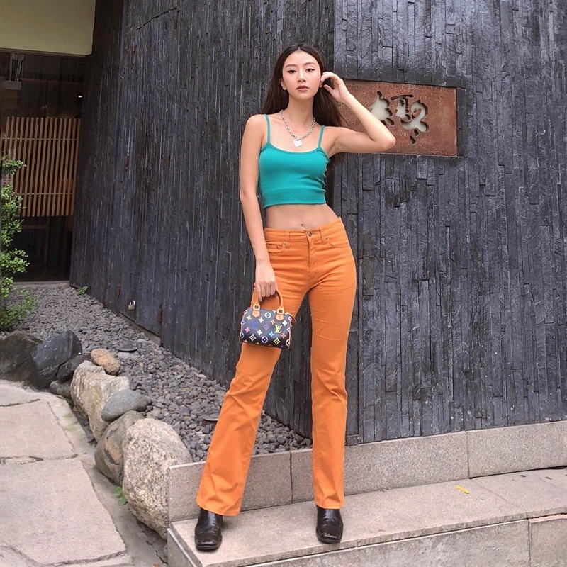 Quỳnh Anh Shyn luôn biết cách "chơi màu" hóa thân thành quý cô retro xuất sắc nhất. Chiếc túi Louis Vuitton cỡ nhỏ màu sắc là phụ kiện ăn ý với công thức mix đồ áo crop top và quần ống loe của nàng hot girl tuần qua.