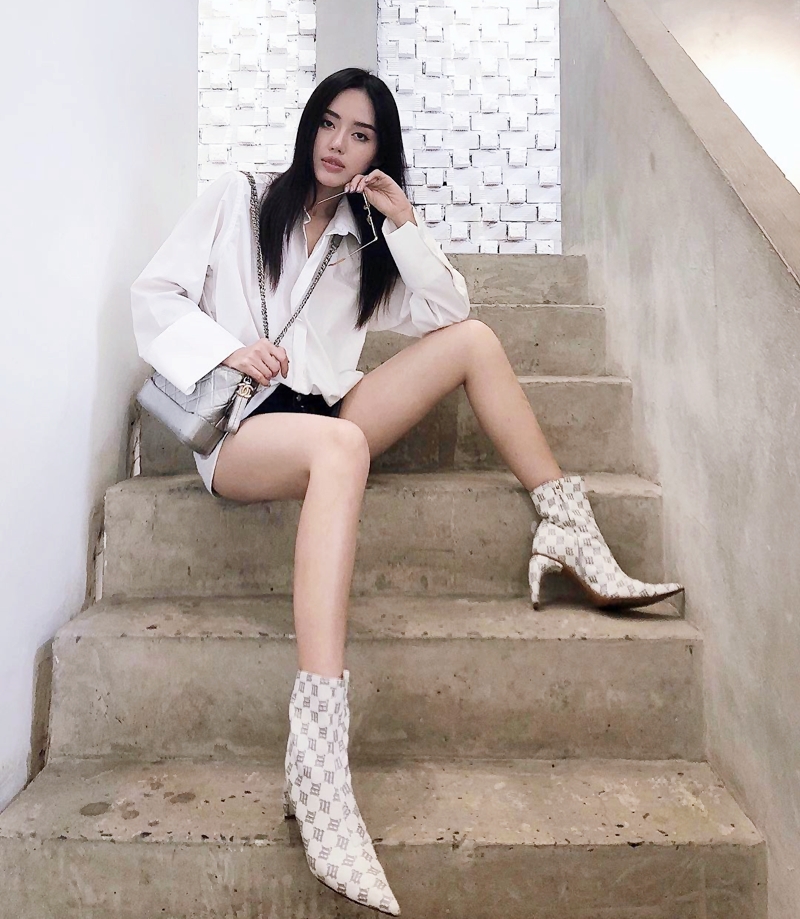 Khánh Linh trưng dụng túi Chanel ánh bạc và boots ấn tượng để nâng tầm bộ cánh street style đen - trắng của mình.