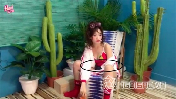 Trong video hậu trường chụp ảnh, Hari Won lộ vòng hai ngấn mỡ. Qua đây có thể thấy dù giảm cân nhưng cơ thể Hari Won chỉ dừng ở mức gọn gàng chứ chưa thực sự săn chắc.