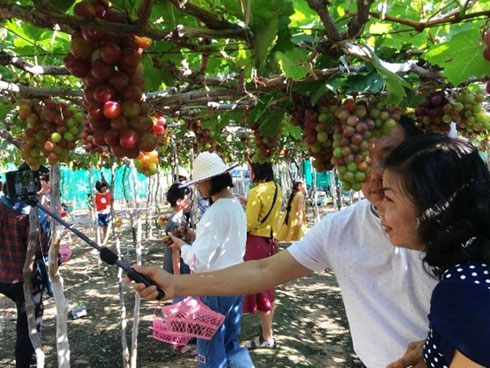 Nhiều người đến vườn nho để check-in, trải nghiệm hái nho tại vườn. Ảnh: D.Thùy