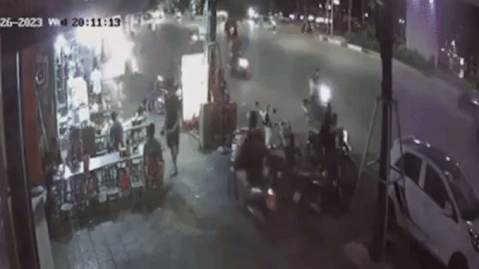 Hình ảnh chiếc ô tô Camry lao lên vỉa hè, tông trúng 3 người ngồi uống trà đá (Ảnh cắt từ clip).