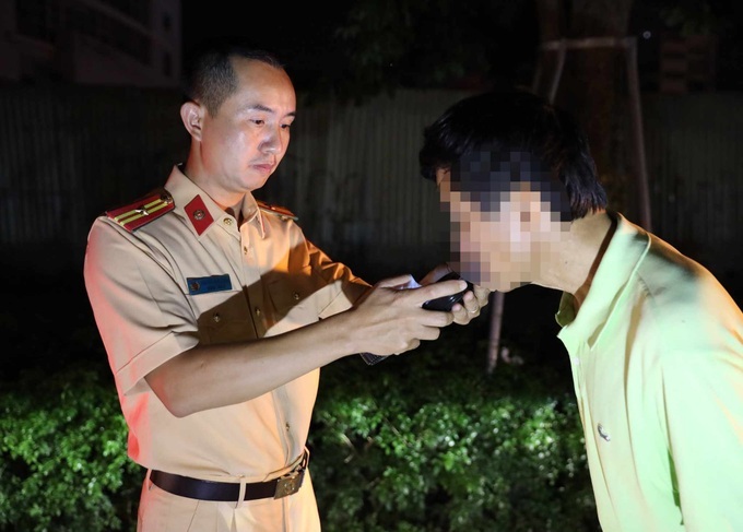 Cảnh sát kiểm tra nồng độ cồn với tài xế ô tô Camry (Ảnh: Phạm Hiếu).