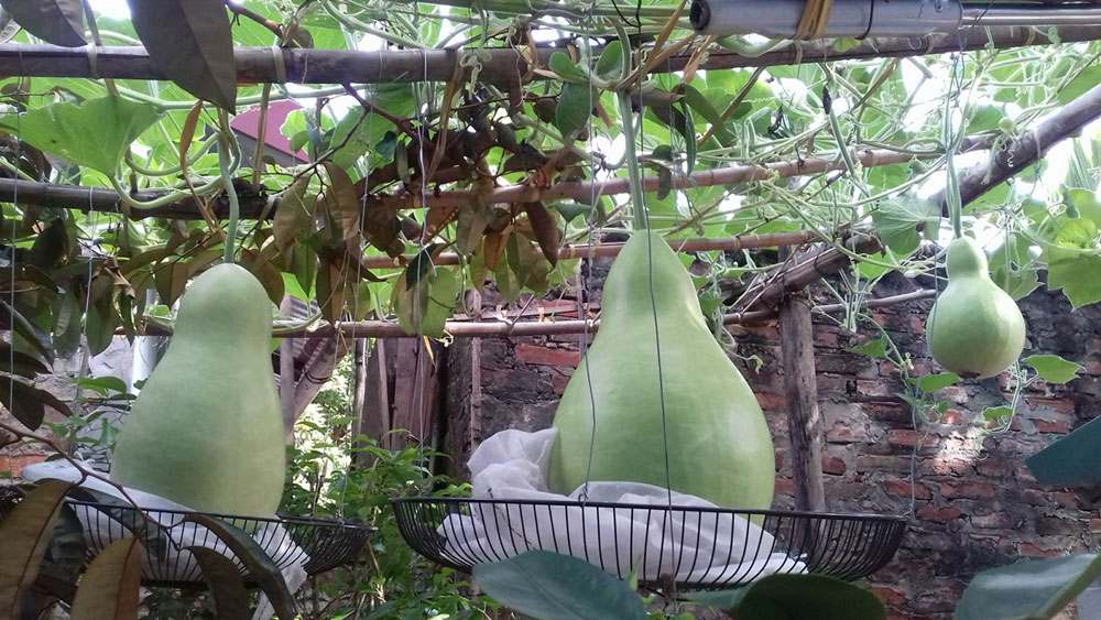 Khoảng tháng 4, chị bắt đầu ươm hạt, sau một tháng thì trồng xuống đất trong. Lúc cây leo được 1m và thời tiết ấm hơn, chị cho cây leo giàn ngoài trời, để khi cây ra hoa, ong bướm dễ thụ phấn. Với người thích trồng loại cây này, chị Huyền khuyên, cây bầu hay bị bệnh nhện đỏ, khi có dấu hiệu bệnh, cần mua thuốc trị ngay.