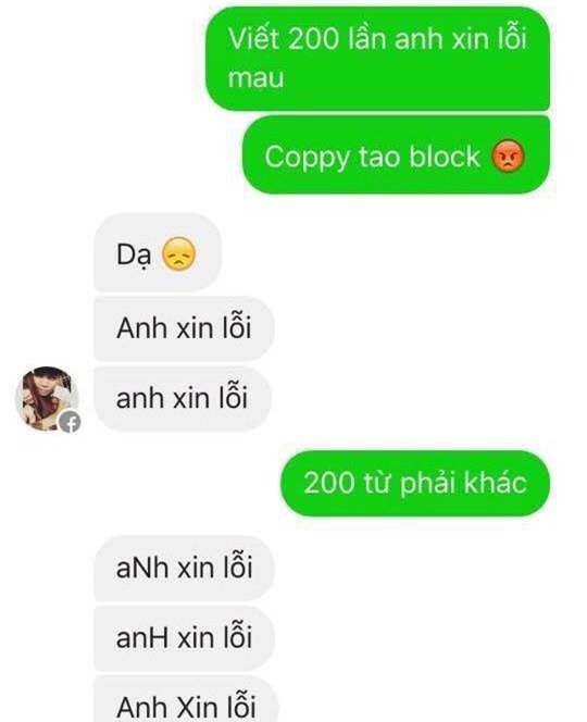 mày tao với người yêu lẫn bắt viết 200 lần xin lỗi như thế, số khác lại