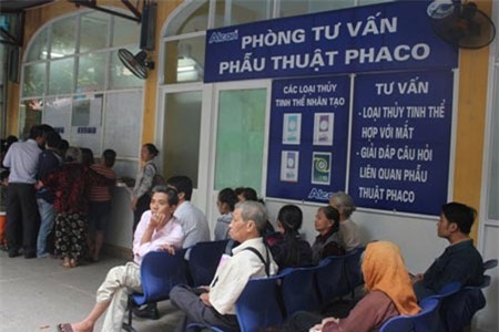 Bệnh nhân chờ khám và điều trị bệnh tại bệnh viện Mắt Hà Nội - nơi đang bị tố cáo có nhiều sai phạm. |