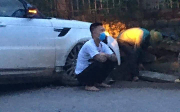 Người có mặt tại hiện trường đã chụp lại hình ảnh chứng minh Huấn Hoa Hồng cùng vợ gặp tai nạn giao thông. Theo đó, Bùi Xuân Huấn ngồi bơ phờ bên cạnh chiếc xe Range Rover, còn người vợ ngồi tạm trước thềm một căn nhà.