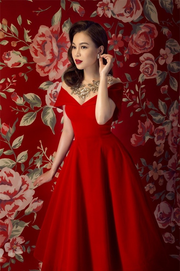 trong bộ hình đón Tết. Người đẹp 27 tuổi chọn những bộ trang phục đỏ
