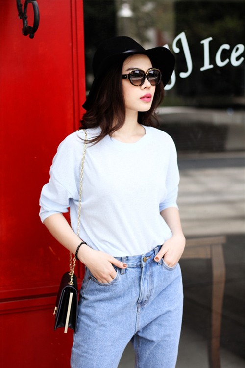 Cô thường chọn cách Mix quần baggy jeans rách cạp cao thoải mái vô cùng "chất" với giá không quá đắt đỏ.