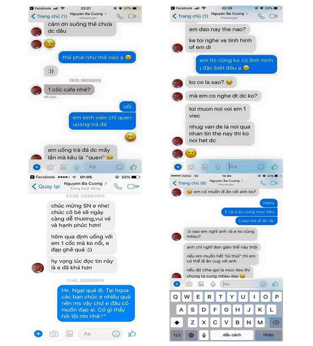 Một số tin nhắn được cho là của giảng viên Nguyễn Hùng Cường trao đổi với các nữ sinh viên. Ảnh chụp từ Facebook
