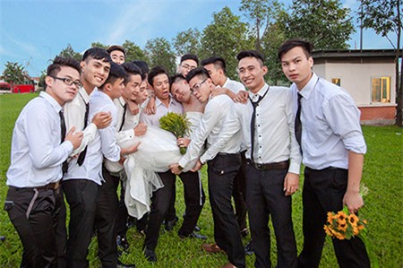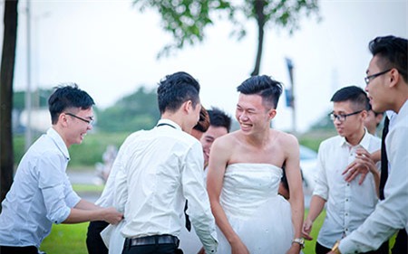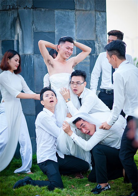 Bộ ảnh mô phỏng một đám cưới nhưng cô dâu mặc vest còn chú rể lại mặc soire khiến ai xem cũng phải cười nghiêng ngả.