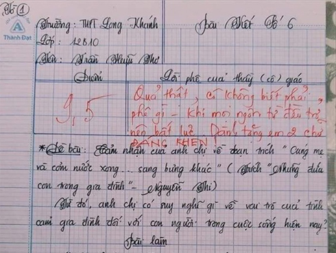 Câu khẳng định "Bố là tất cả cuộc đời của em" dường như đã nói hết tất cả những gì em muốn nói. Cô giáo đọc bài cũng đã vô cùng xúc động và ghi lời phê "Cô khen con" rồi chia sẻ lên facebook với lời bình: "Bài văn của trò lớp 2 kể về bố của mình! Thật chân thật, mộc mạc mà vô cùng đáng yêu! Cám ơn con vì đã yêu bố của mình đến vậy! Bố em đọc chắc cảm động lắm đây!"