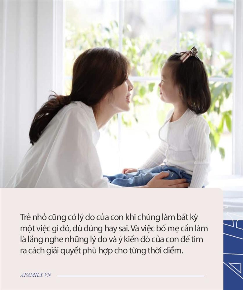 Trẻ nhỏ cũng có lý do của con khi chúng làm bất kỳ một việc gì đó, dù đúng hay sai. Và việc bố mẹ cần làm là lắng nghe những lý do và ý kiến đó của con. Chỉ có kiên nhẫn lắng nghe mới có thể hiểu được chính xác nguyên nhân và tìm ra cách xử lý phù hợp. Bố mẹ không nên ỷ vào mình là người lớn mà phớt lờ ý kiến của con, điều này chỉ tạo ra ảnh hưởng xấu đến trẻ mà thôi.