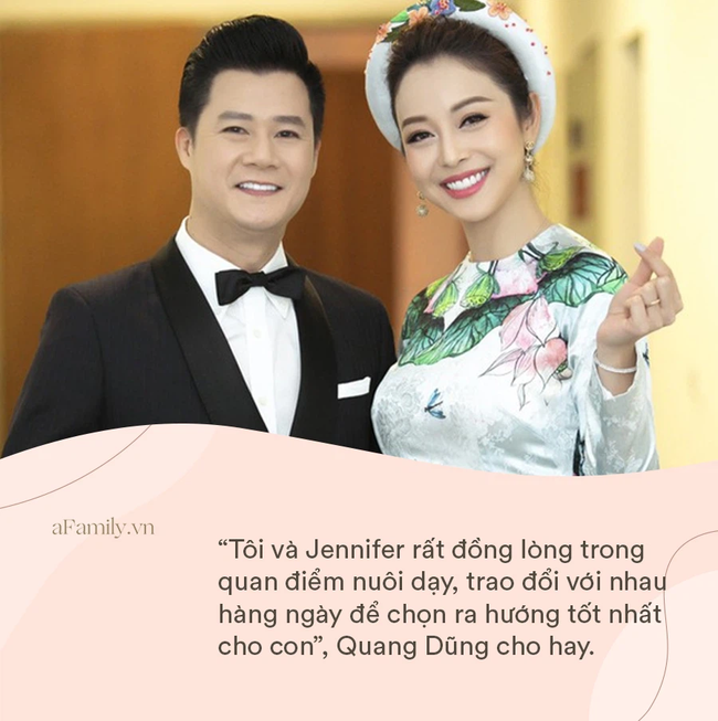 Quang Dũng từng chia sẻ với báo chí: "Tôi và Jennifer rất đồng lòng trong quan điểm nuôi dạy, trao đổi với nhau hàng ngày để chọn ra hướng tốt nhất cho con. Bảo Nam càng lớn càng hiểu chuyện. Thời hiện đại, mọi thứ rất nhẹ nhàng chứ không còn những cảnh “mẹ ghẻ con chồng” như hồi xưa nữa. Quan trọng nhất là bé hiểu bố mẹ luôn yêu thương và lo lắng cho con vô điều kiện".