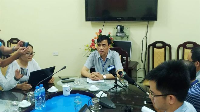 | Phó Giám đốc Sở GD & ĐT Hòa Bình trao đổi với các nhà báo về “nghi vấn điểm cao” tại Hòa Bình. |