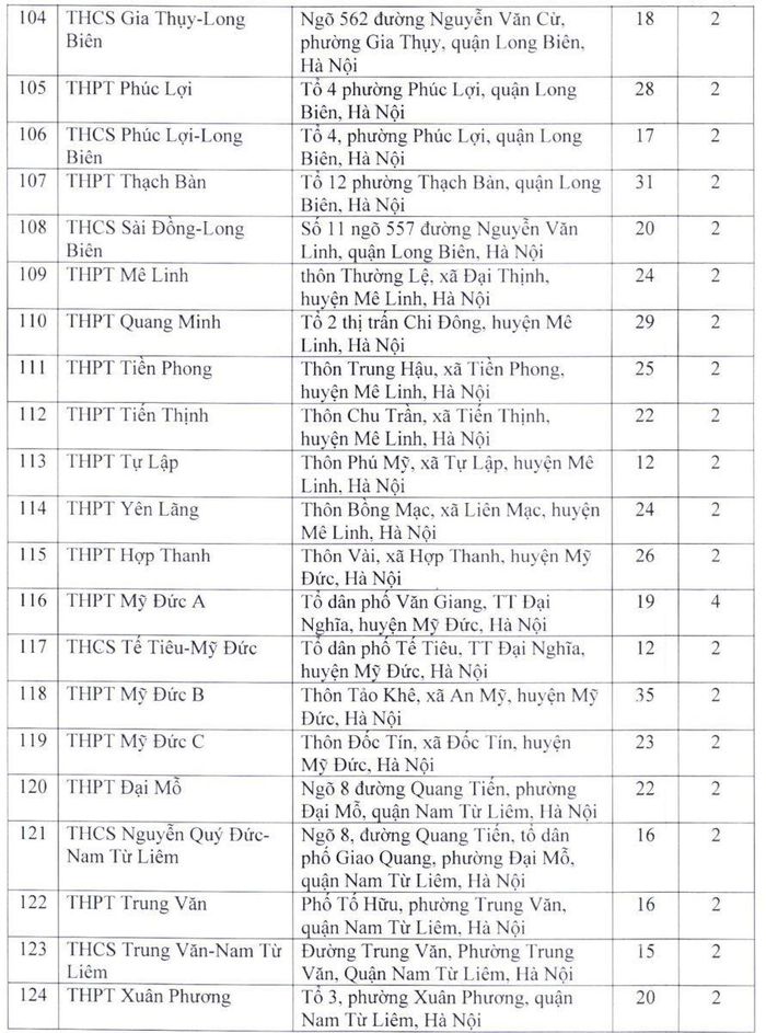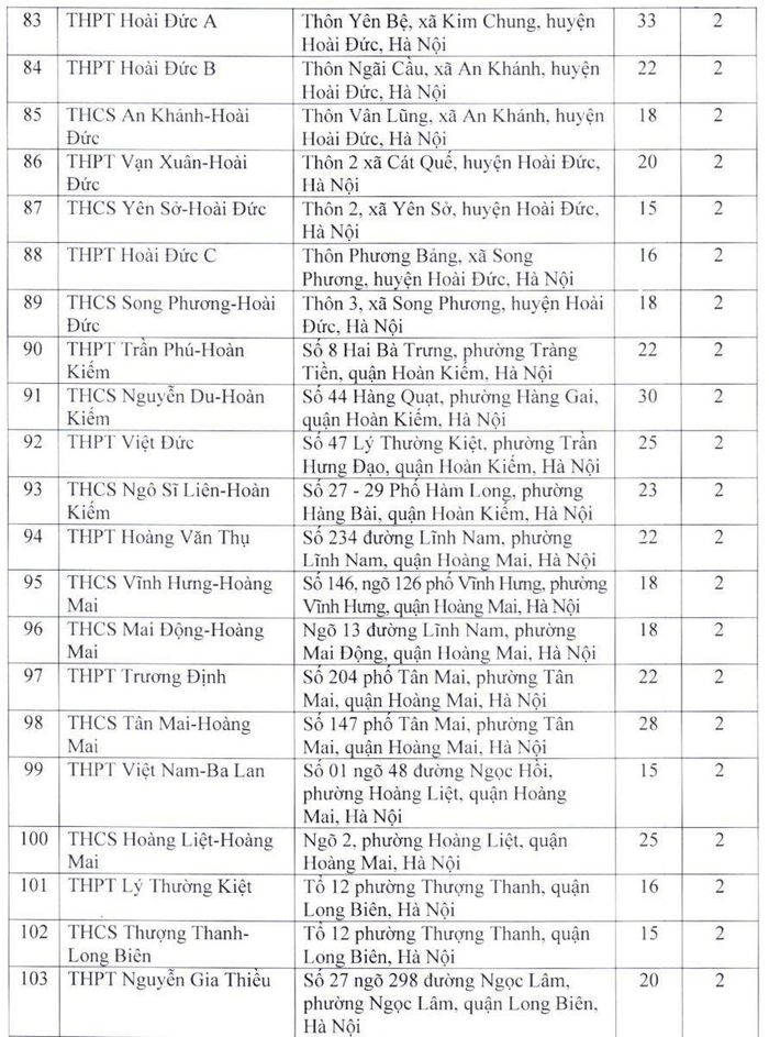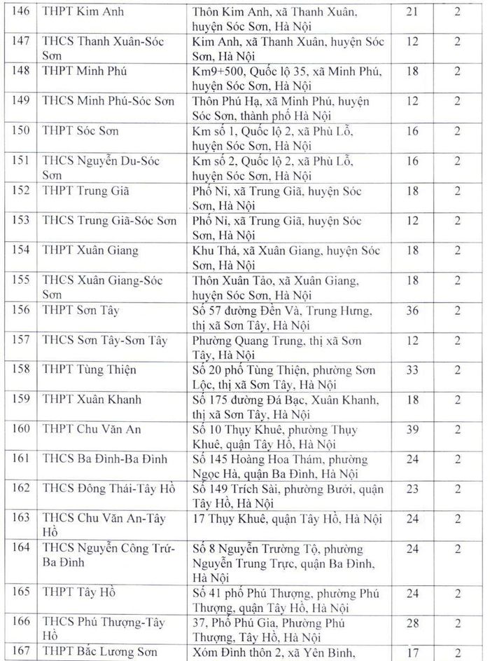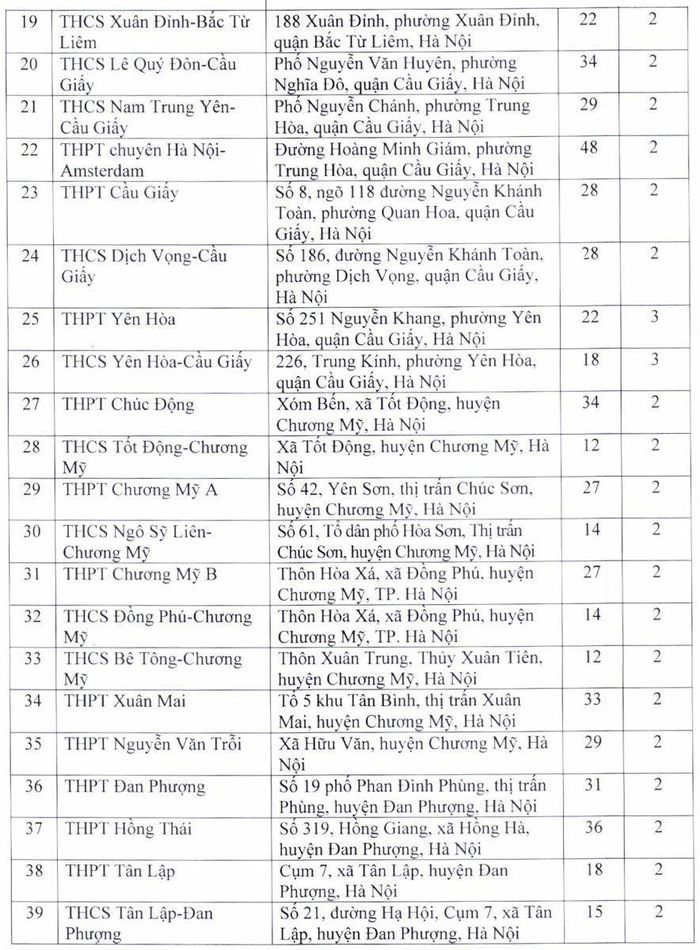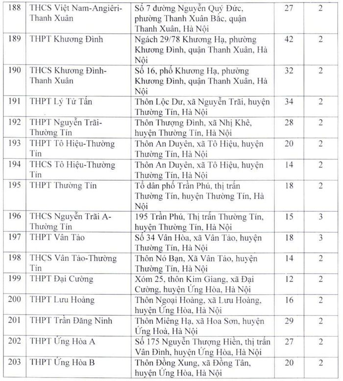 Danh sách các địa điểm tổ chức kỳ thi tuyển sinh vào lớp 10 THPT chuyên và không chuyên tại Hà Nội cụ thể như sau: